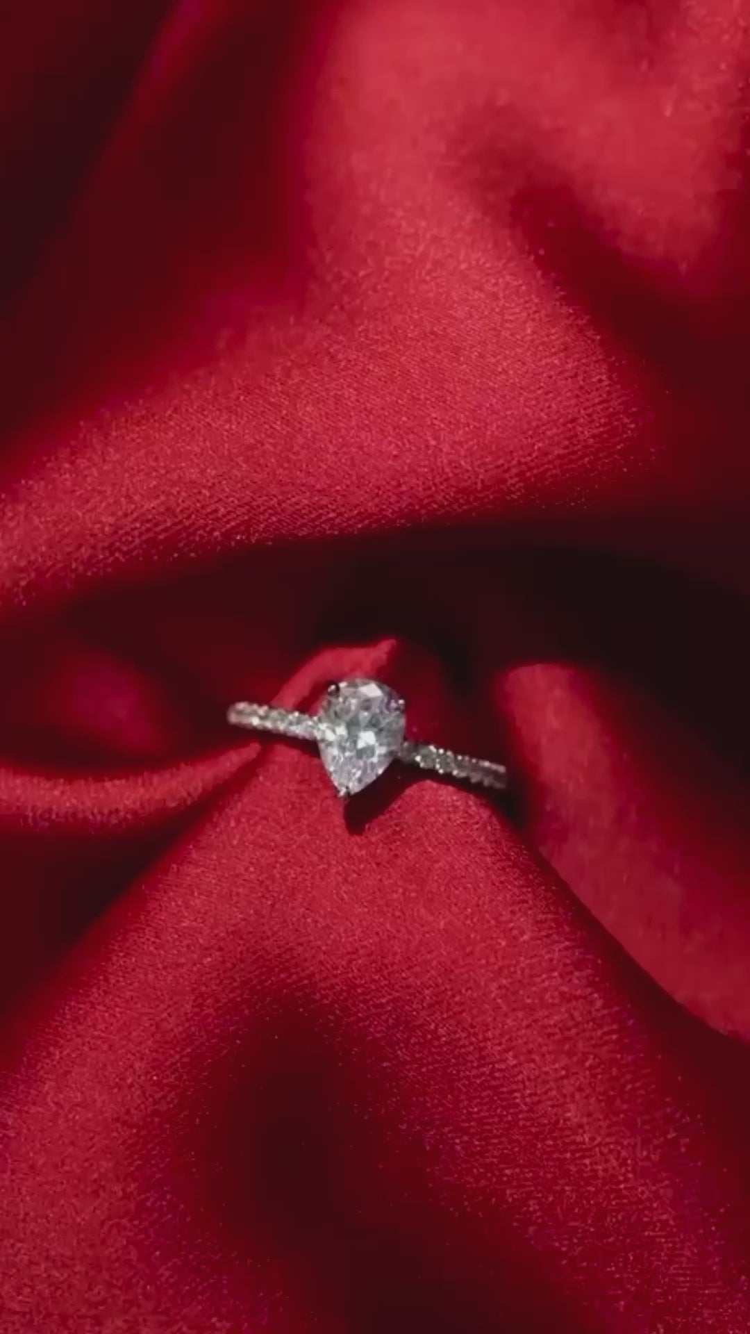 4 Prong Classic Grace Pear Solitaire Pavé Ring