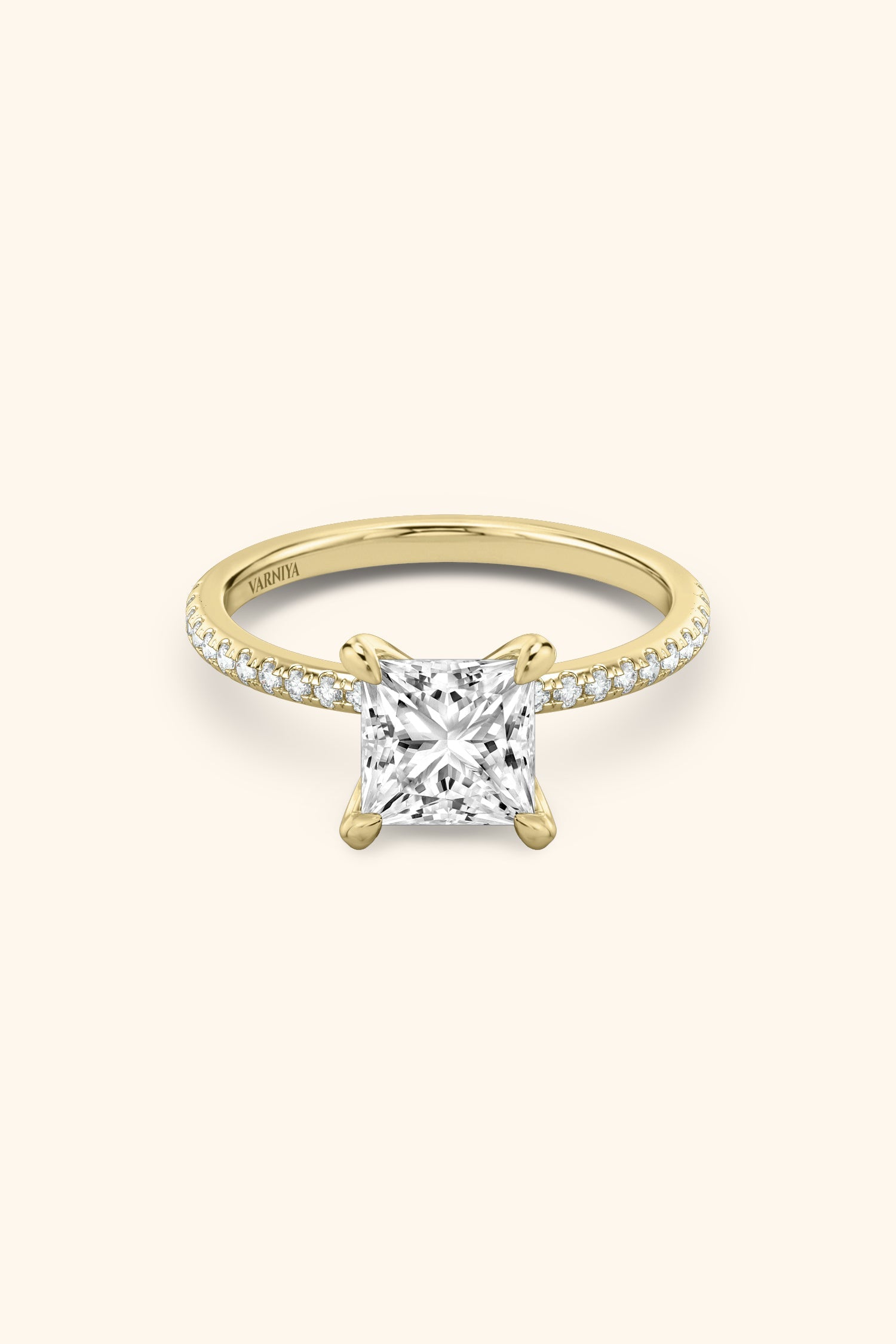 4 Prong Classic Grace Princess Solitaire Pavé Ring