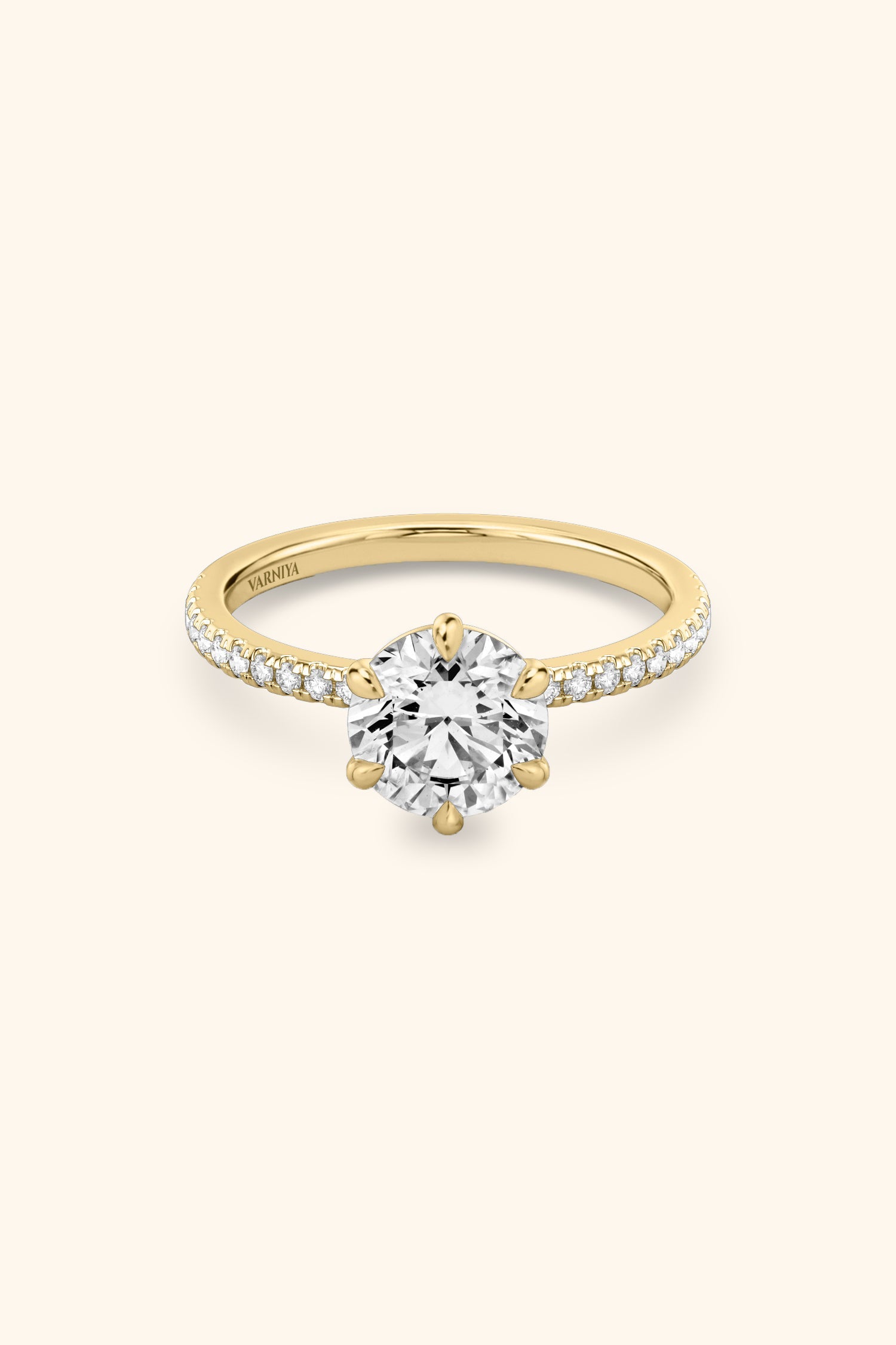 6 Prong Classic Round Brilliant Solitaire Pavé Ring