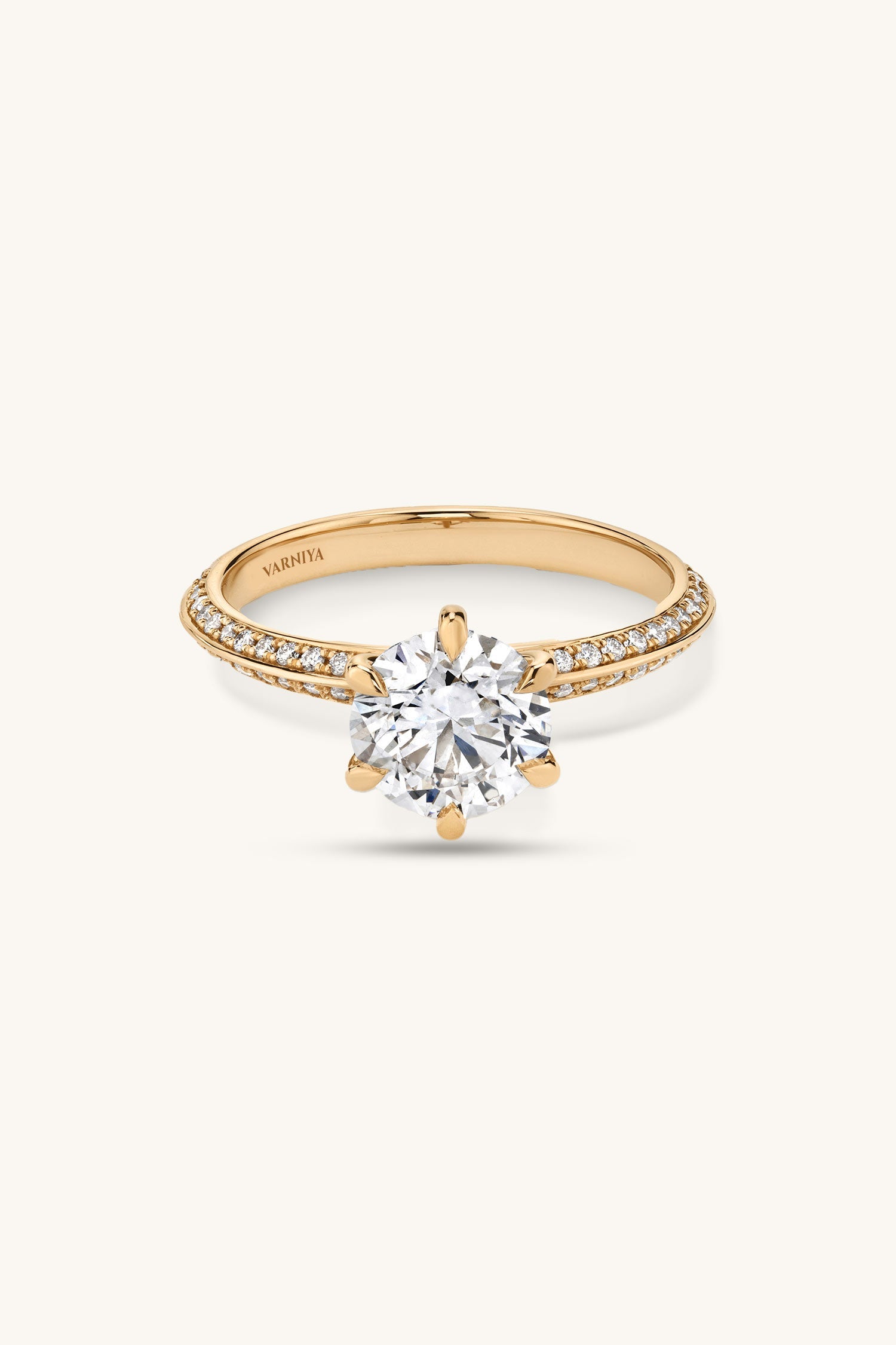 Amália Round Brilliant Solitaire Pavé Ring