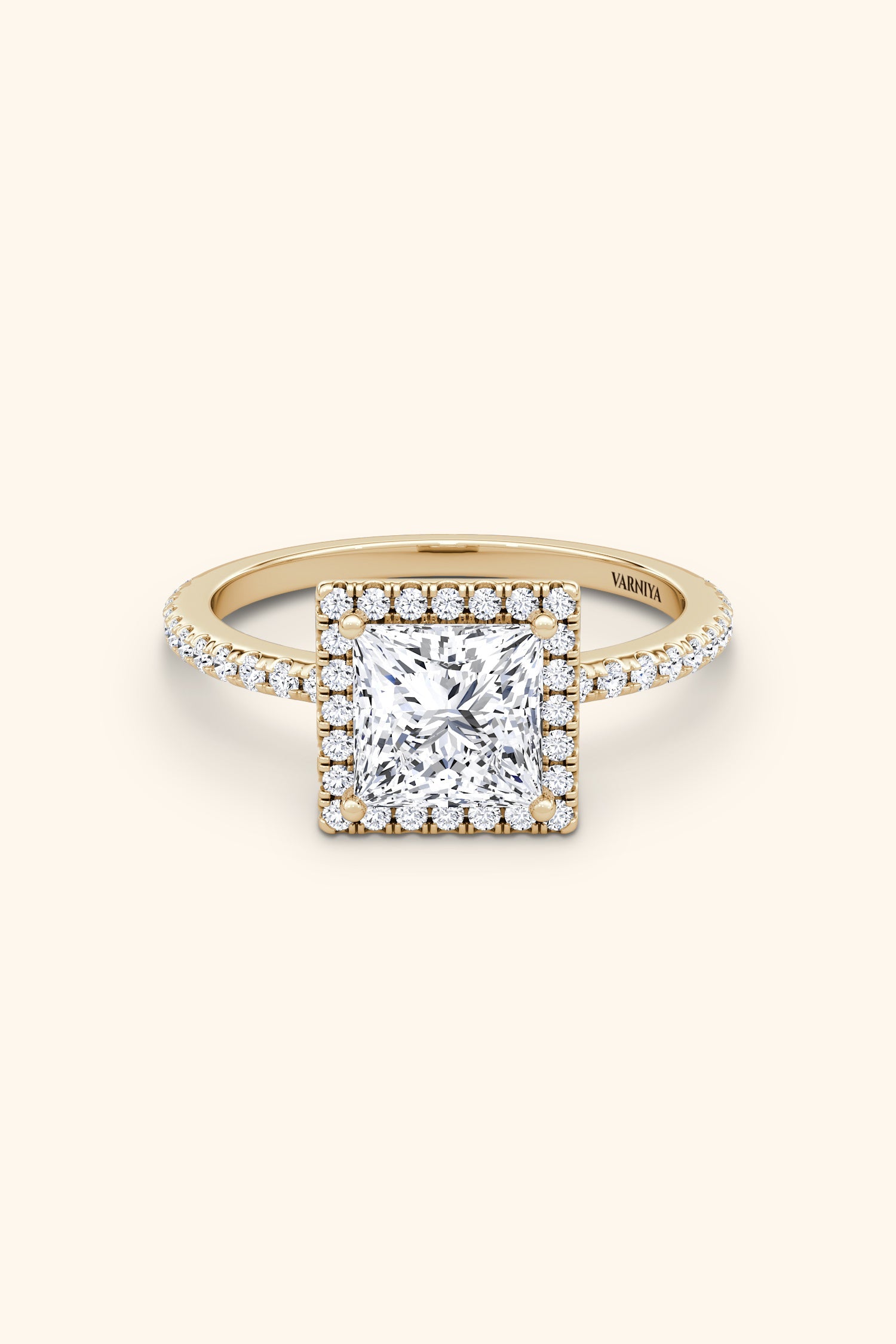 Angelica Classic Halo with a Princess Solitaire Pavé Ring