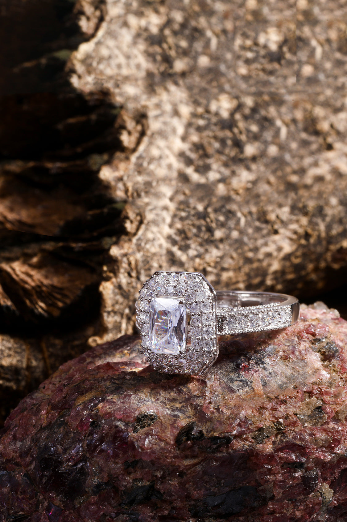 Celestina Double Studded Halo & Pave Ring with Emerald Solitaire