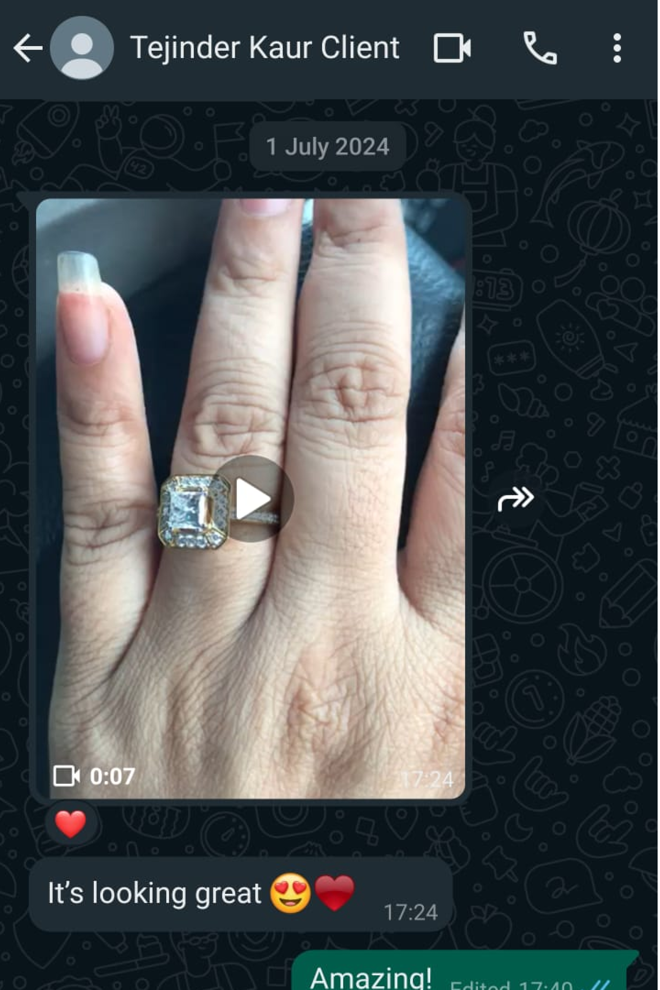 Thank you Varun and team for making this happen! Varun was prompt and got my ring ready in less than 3 weeks. It turned out to be better than I expected so thank you again for making our 5 year anniversary celebration even more special :)